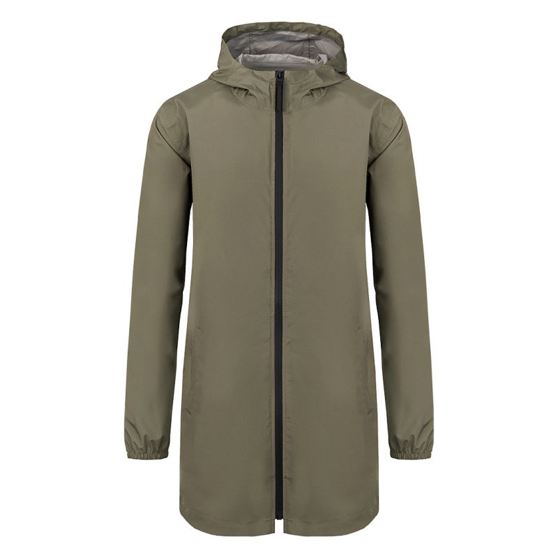 Kabanica od recikliranog poliestera sa poliuretanskim premazom, visokom kragnom, kapuljačom savijenom u kragni sa učkurom, dva prednja džepa, elastičnim ranflama na rukavima i vodootpornim rajsferšlusom. Karakteristike Sastav: 100% poliester Gramatura: 100 g/m2 Tema: Eko proizvod , RPET Kroj: Klasičan Pol: Unisex Performanse: Vodootporno Dostupne veličine od XS do 3XL Dostupne boje: teget, bež, crna i maslinasta