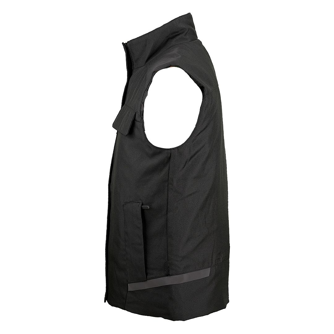 Radni prsluk sa visokom kragnom. Karakteristike: Tri džepa na grudima Dva prednja džepa Unutrašnji džep za tablet Reflektivni detalji Sastav: 1. Lice - 100% poliester, poliuretanski premaz 2. Postava 3. Punjenje Dostupne veličine: S do 3XL