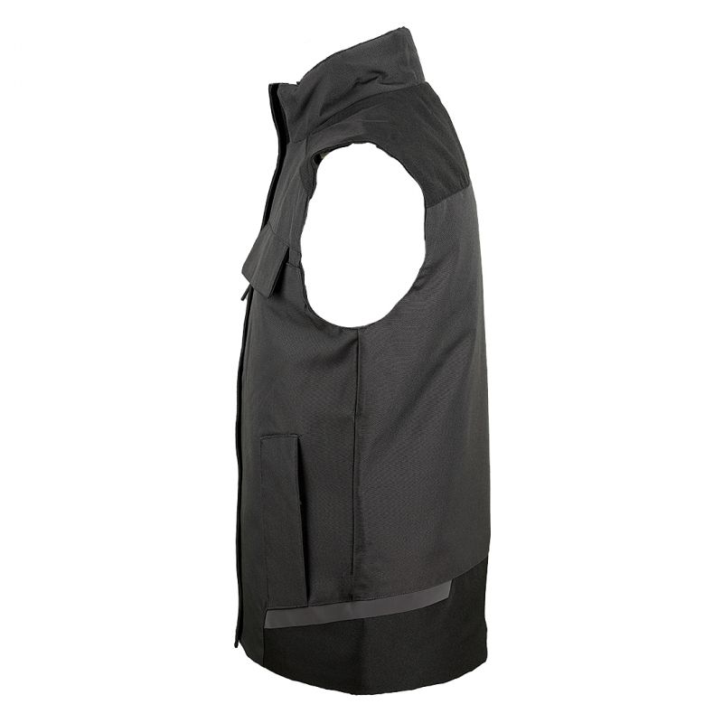Radni prsluk sa visokom kragnom. Karakteristike: Tri džepa na grudima Dva prednja džepa Unutrašnji džep za tablet Reflektivni detalji Sastav: 1. Lice - 100% poliester, poliuretanski premaz 2. Postava 3. Punjenje Dostupne veličine: S do 3XL
